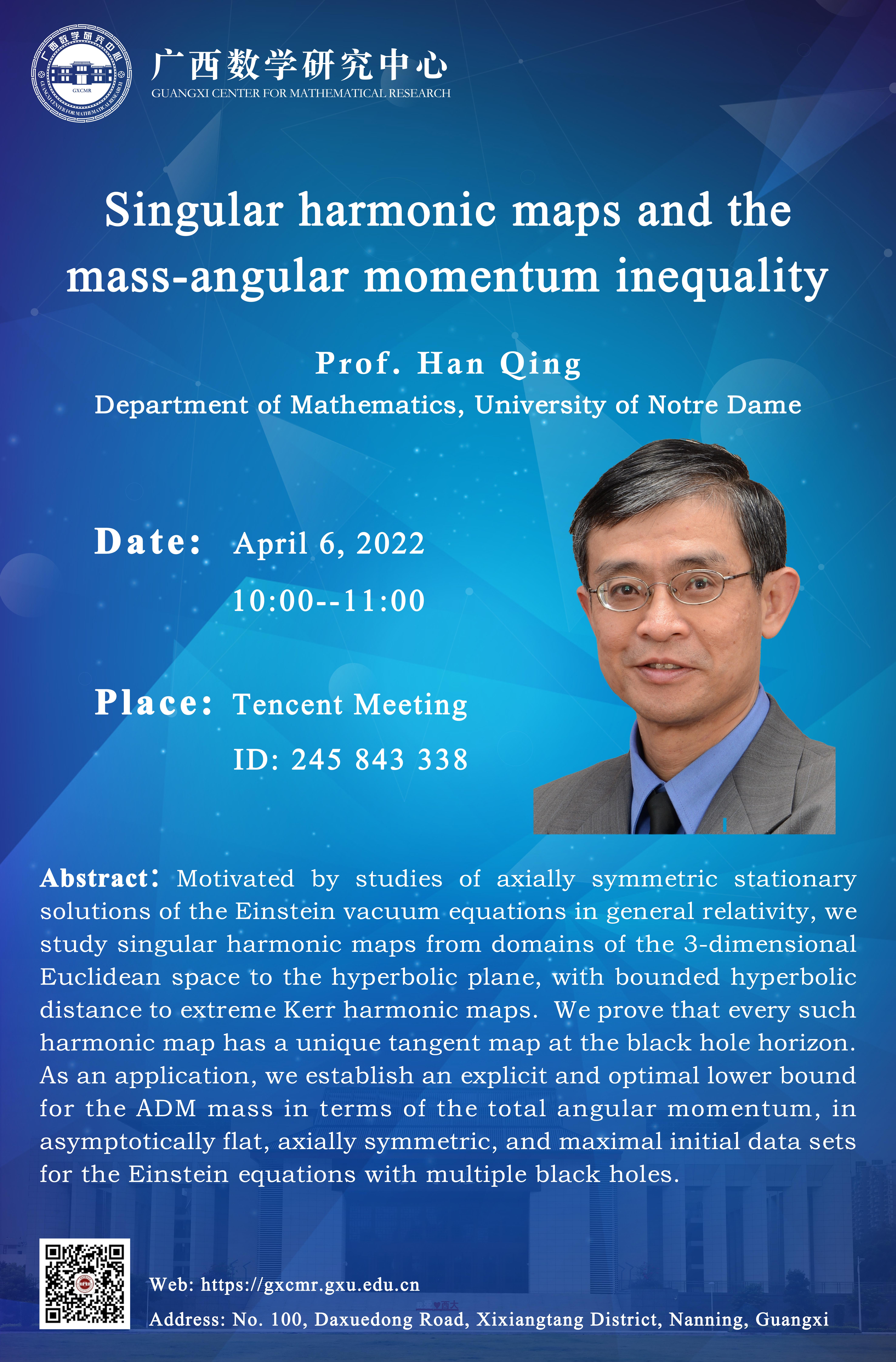 广西数学研究中心太阳集团2138网址:Singular harmonic maps and the mass-angular momentum inequality
