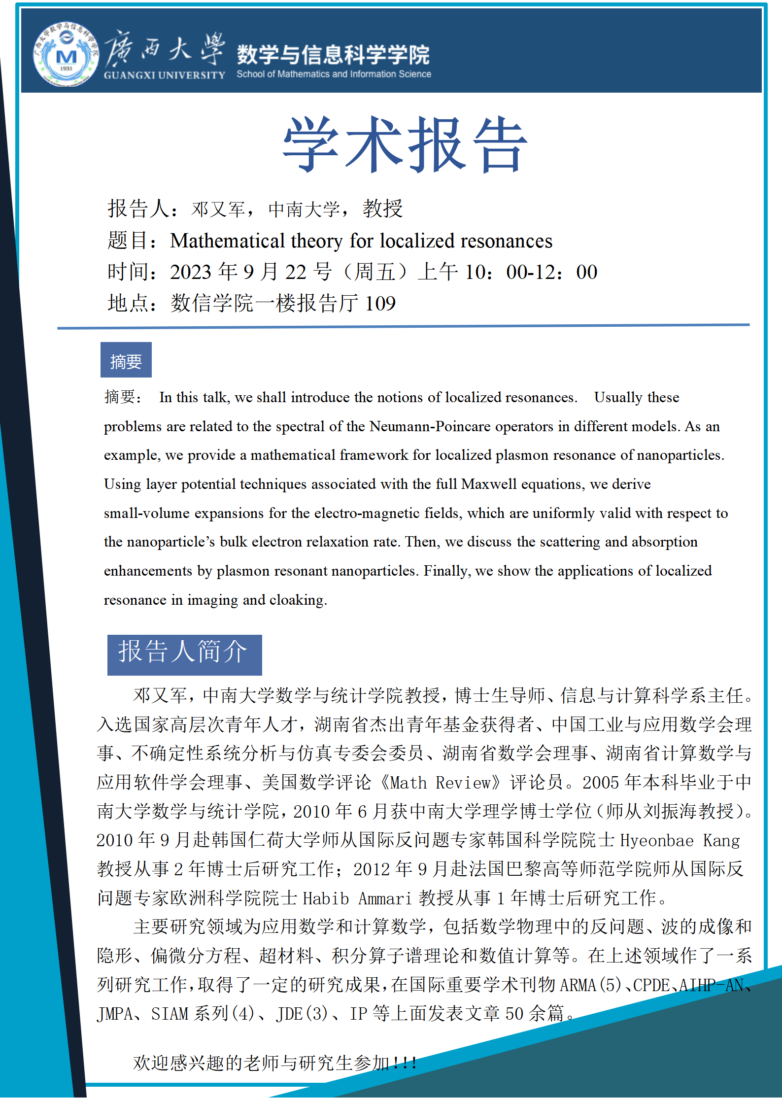 太阳集团2138网址:Mathematical theory for localized resonances