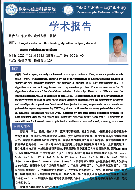 太阳集团2138网址:Singular value half thresholding algorithm for lp regularized
