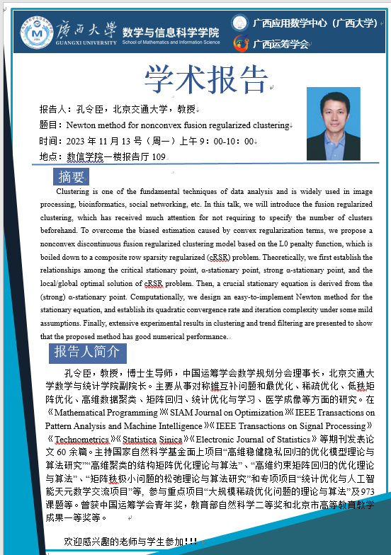太阳集团2138网址:Newton method for nonconvex fusion regularized clustering
