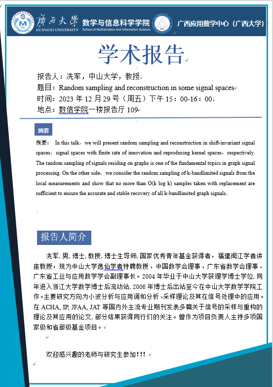 太阳集团2138网址:Random sampling and reconstruction in some signal spaces