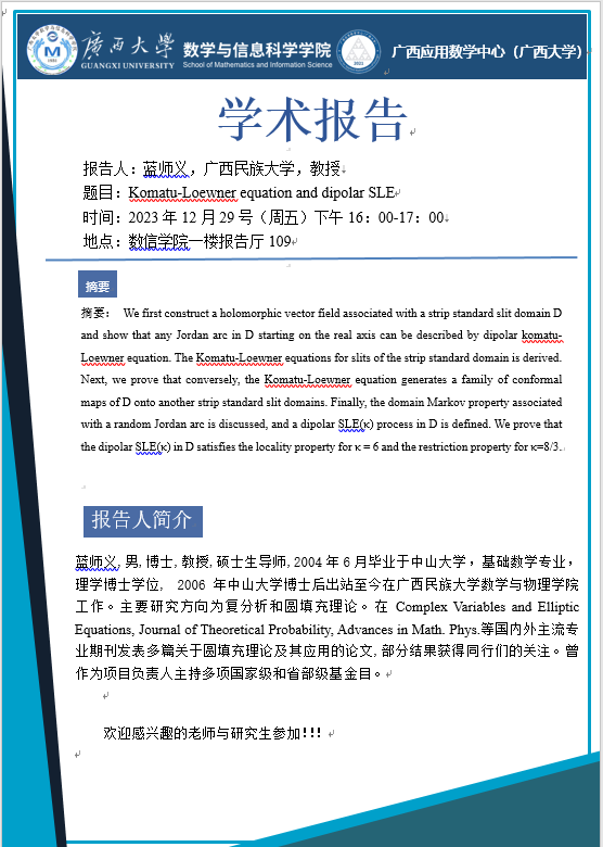 太阳集团2138网址:Komatu-Loewner equation and dipolar SLE