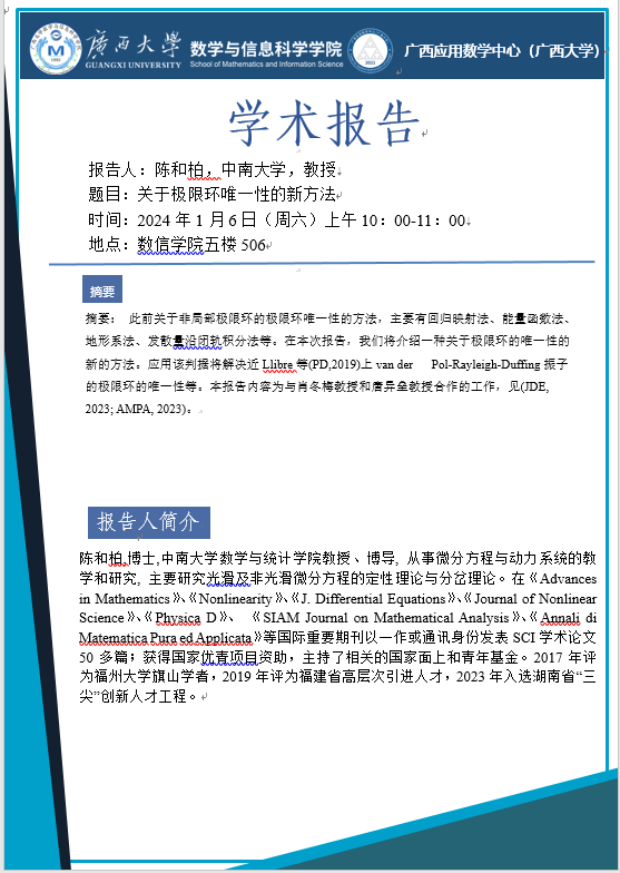 太阳集团2138网址:关于极限环唯一性的新方法