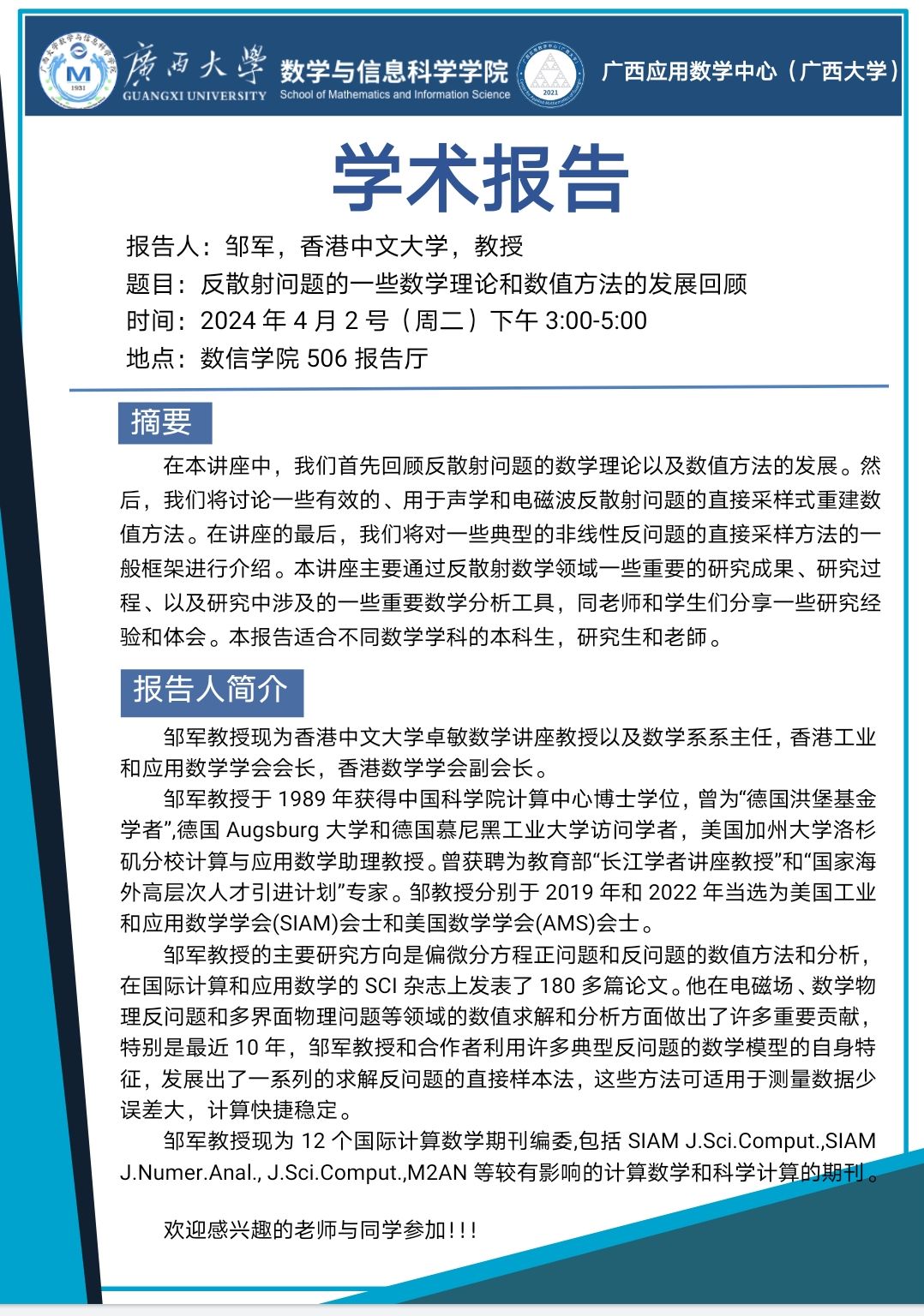 太阳集团2138网址:反散射问题的一些数学理论和数值方法的发展回顾