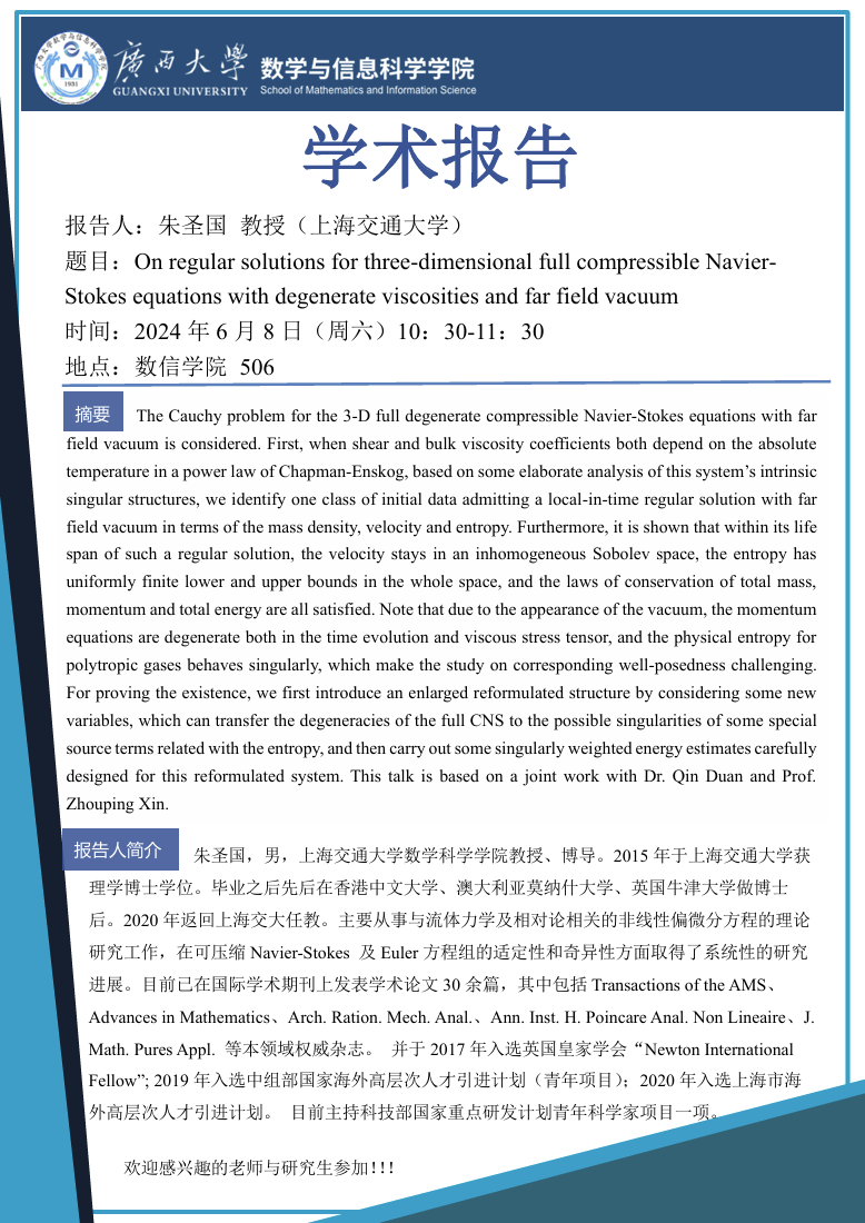 太阳集团2138网址:On regular solutions for three-dimensional full compressible Navier-Stokes equations with degenerate viscosities and far field vacuum