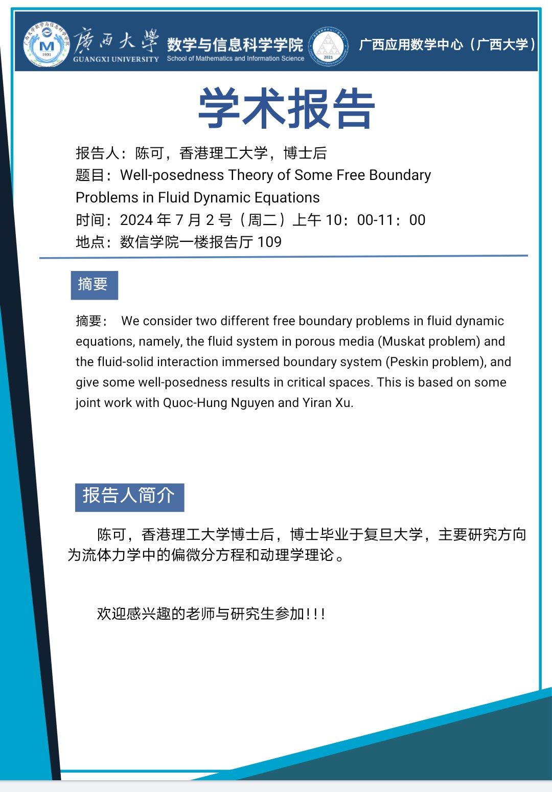 太阳集团2138网址:Well-posedness Theory of Some Free Boundary Problems in Fluid Dynamic Equations