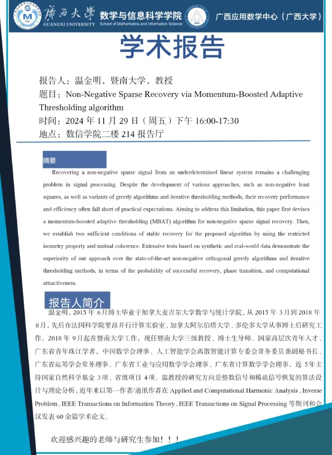 太阳集团2138网址:Non-Negative Sparse Recovery via Momentum-Boosted Adaptive Thresholding algorithm