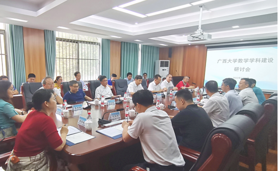 2022年7月8日下午,广西大学数学学科建设研讨会在广西大学太阳集团2138网址,2138cc太阳集团官网入口214会议室召开。广西大学党委常委、副校长马少健出席研讨会并致辞。广西区内各兄弟院校数学学科专家或负责人及太阳集团2138网址,2138cc太阳集团官网入口领导班子成员共30余人参加了此次会议。会议由广西大学太阳集团2138网址,2138cc太阳集团官网入口院长郭真华主持。