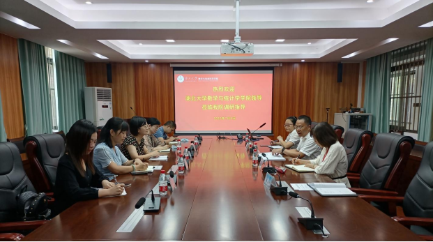 2022年7月4日上午,湖北大学数学与统计学学院党委书记周霞、党委副书记何肖,湖北大学党委组织部副部长、机关党委副书记黄江英、党委组织部组织科科长马兴建、党委组织部干部科干部陈秋瑞一行5人莅临广西大学太阳集团2138网址,2138cc太阳集团官网入口调研指导工作。学院党委书记黄建荣等领导班子成员参加了调研交流会。