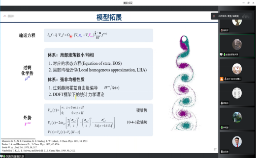 报告会上,郭真华教授、上海交通大学博士研究生赵腾、广西大学博士研究生李涛、广西大学钟明溁教授、广西大学吕文琦助理教授、华东理工大学副教授徐小飞副教授等六位与会者进行了学术演讲。演讲内容包括非线性偏微分方程中的几类流体力学方程的研究概况与最新研究进展,以及化学高分子改性对表面催化反应和扩散的影响、耦合流体结构的微观传递理论等。会议上大家发言踊跃、讨论充分,明确了下一步合作的方向,期待针对具体的问题继续开展合作研究。