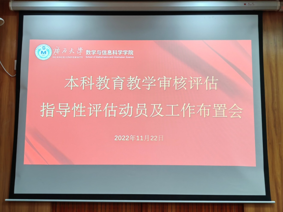 根据学校工作安排,11月28日至12月16日将开展广西大学本科教育教学审核评估指导性评估,明年4月将迎来本科教育教学审核评估。为切实做好迎评工作, 2022年11月22日下午数信学院组织召开了迎接本科教育教学审核评估和指导性评估工作动员及布置会,会议由院党委书记黄建荣主持,全体教职工参加会议。