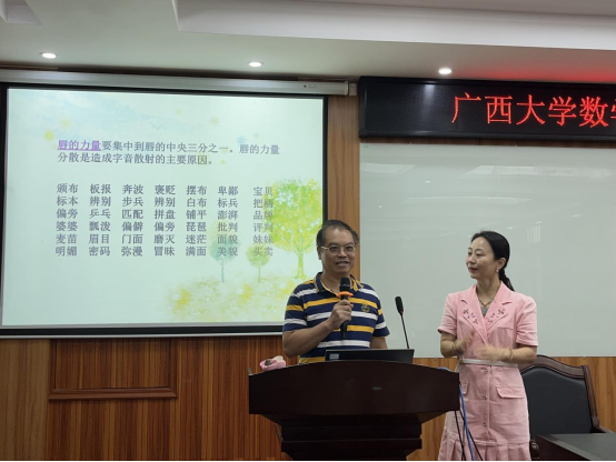 9月19日下午,为了帮助太阳集团2138网址教师应对职业性用嗓问题,掌握发声技巧,科学保护嗓子,更好地完成教学工作,学院工会邀请广西大学艺术学院田昀艳副教授在学院109报告厅向全院教师作了精彩的“科学发声与嗓音保护”讲座。学院领导及全体教职工参加讲座,学院党委覃宪儒书记主持讲座。