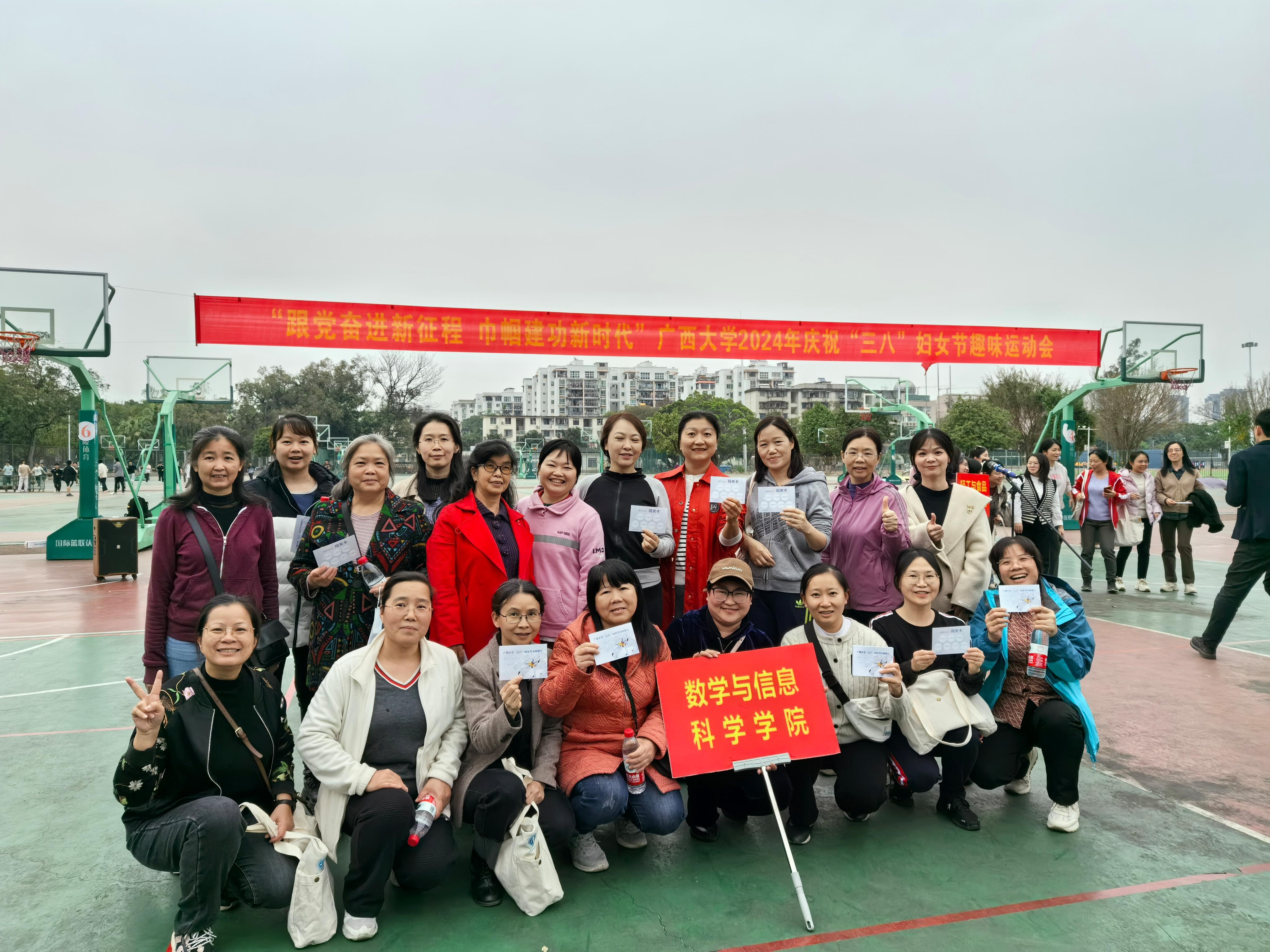 三月芳菲,灼灼韶华。为庆祝第114个“三八”国际妇女节,3月8日下午,校工会在西校园篮球场组织开展“跟党奋进新征程 巾帼建功新时代”女教职工趣味运动会。校党委副书记、驻广西大学纪检监察组组长、纪委书记金顺南,校党委常委、副校长、工会主席刘向出席活动。太阳集团2138网址,2138cc太阳集团官网入口分工会组织学院20余名女教工参加了趣味运动会。
