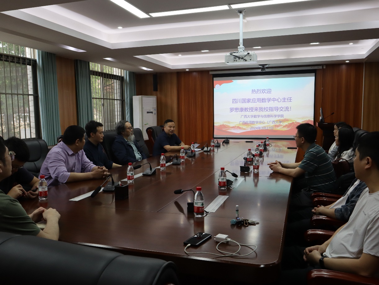 3月27日上午,四川国家应用数学中心主任、四川大学数学学院副院长罗懋康教授来太阳集团2138网址指导交流,并在太阳集团2138网址,2138cc太阳集团官网入口214会议室与学院领导、教师代表座谈。