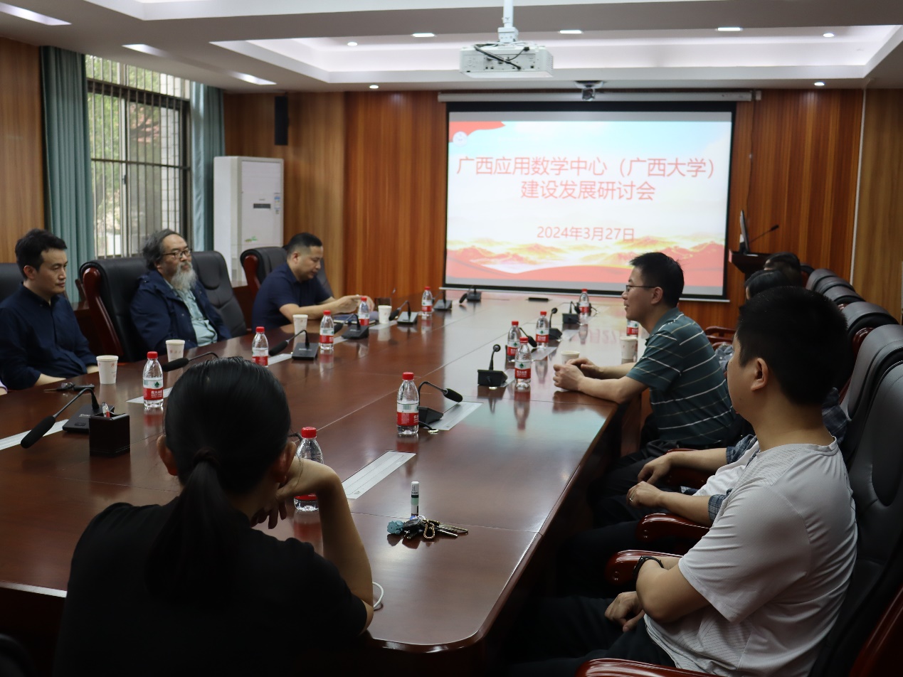 罗懋康教授对太阳集团2138网址学科建设给予了高度肯定,并对广西应用数学中心(广西大学)建设发展给予了方向性的指导和技术性的建议。他表示,目前国家高度重视原始创新和重大工程领域中的数学应用研究,希望通过不懈地努力,将太阳集团2138网址数学学科建设提升至新的高度,将广西应用数学中心(广西大学)发展成为具有国际先进水平的国家区域性数学应用研究中心和具有一定国际影响力的数学研究基地;促进应用数学基础研究与科学技术发明、商业应用等衔接,为广西优势特色产业的健康发展提供可持续动力,切实为解决社会经济发展中的关键瓶颈数学问题作出贡献!