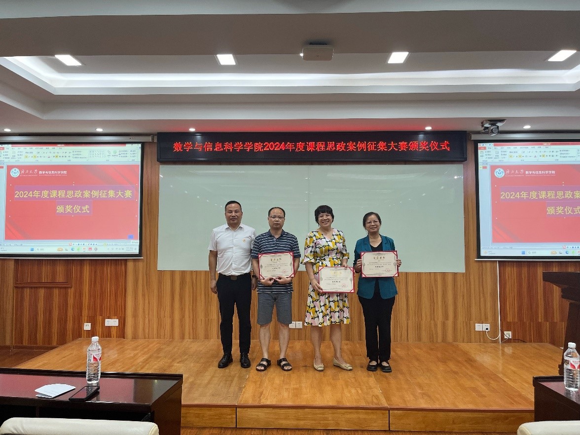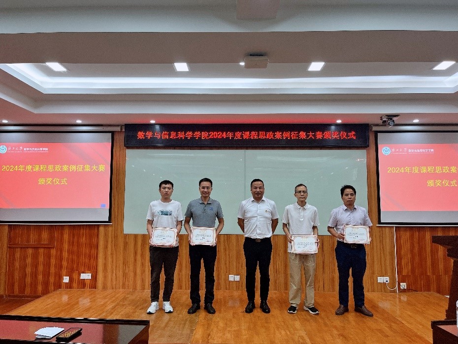 7月11日下午,数信学院2024年度课程思政案例征集大赛颁奖仪式在学院109教室圆满举行。本次活动由学院党委副书记唐旭彬主持,学院领导班子成员为获奖者颁奖。