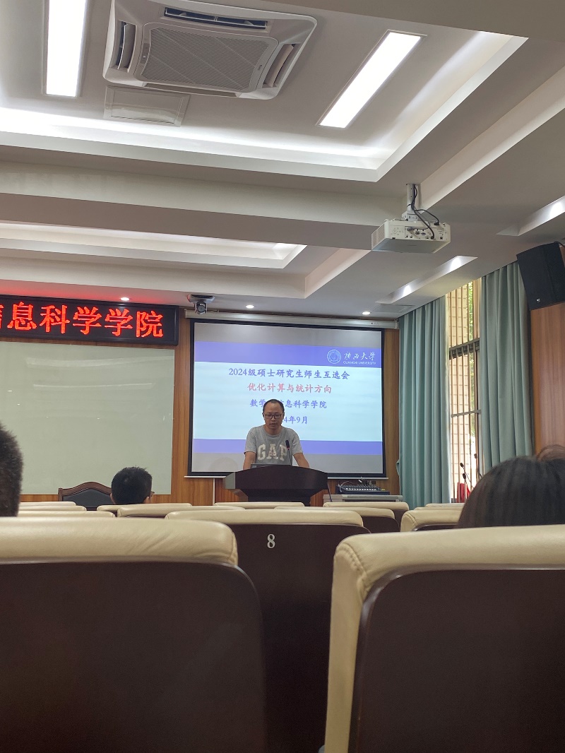 会议开始,袁功林副院长全面介绍了学院的科研发展历程、师资力量以及研究方向。随后,由来自偏微分方程及其理论应用、优化计算与统计、代数函数、几何拓扑这四大核心研究方向的四位导师代表——何其涵副教授、杨宇宁教授、李靖建教授、闫卫平教授,轮流上台,逐一分享了各自团队中每位导师的情况,包括专业背景、所承担的科研项目以及取得的科研成果等。为与会者呈现了生动且充满启迪的科研画卷。会议尾声,导师们与同学们进行了一对一的亲切交流,加深了师生间的了解。