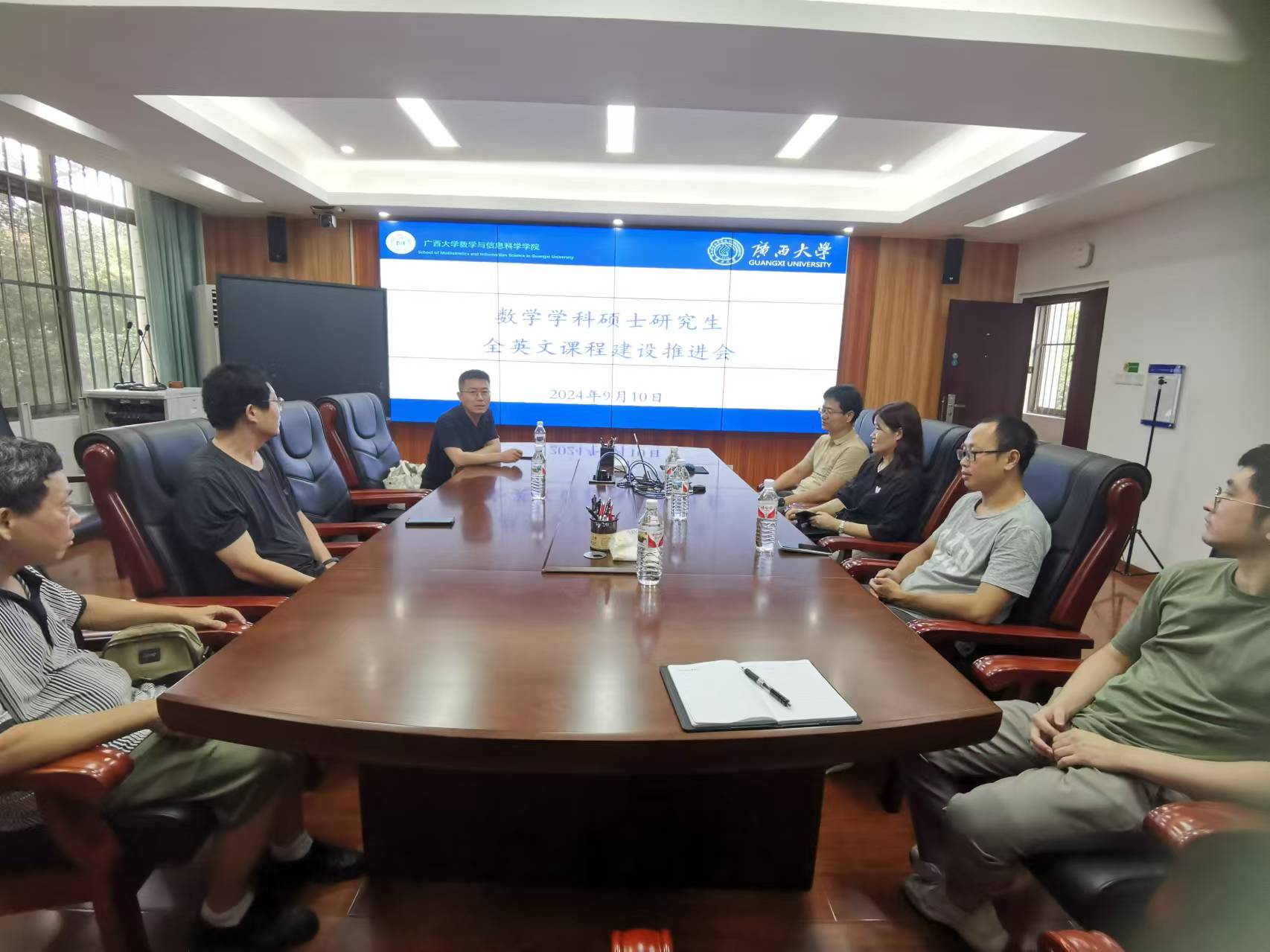 为加速提升数学学科研究生教育的国际化水平,推进全英文教学环境的构建,太阳集团2138网址于9月10日下午在213会议室召开了数学学科硕士研究生全英文课程建设专项推进会议,会议由袁功林副院长主持,相关课程负责人参会。