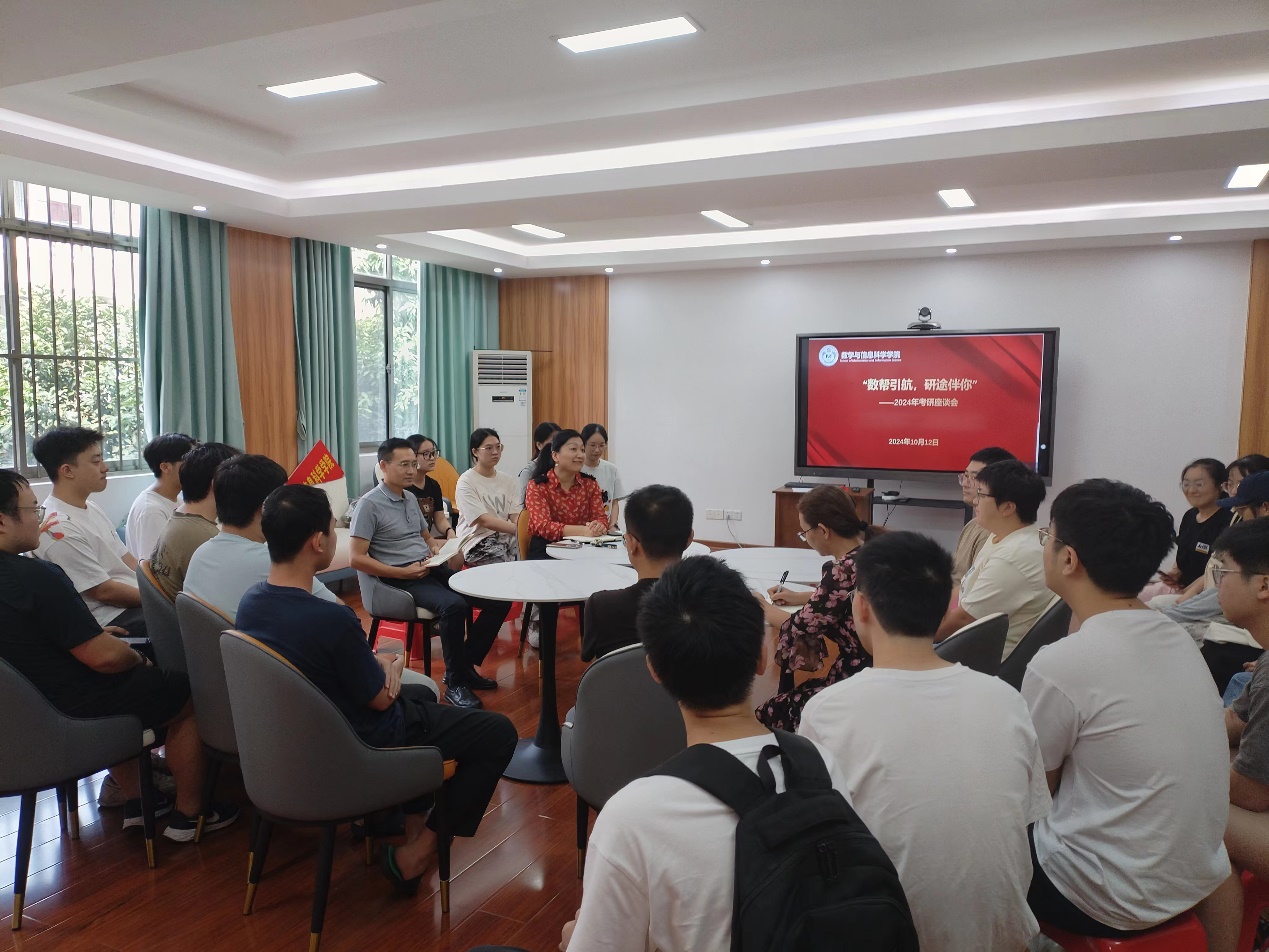 10月12日,太阳集团2138网址,2138cc太阳集团官网入口2024年考研座谈会在学院220室举行,学院党委副书记唐旭彬、副院长唐春明、辅导员刘春霞、班主任刘楚箫、张幸以及2021级的全体考研同学参加了座谈会。座谈会由学院党委副书记唐旭彬主持。