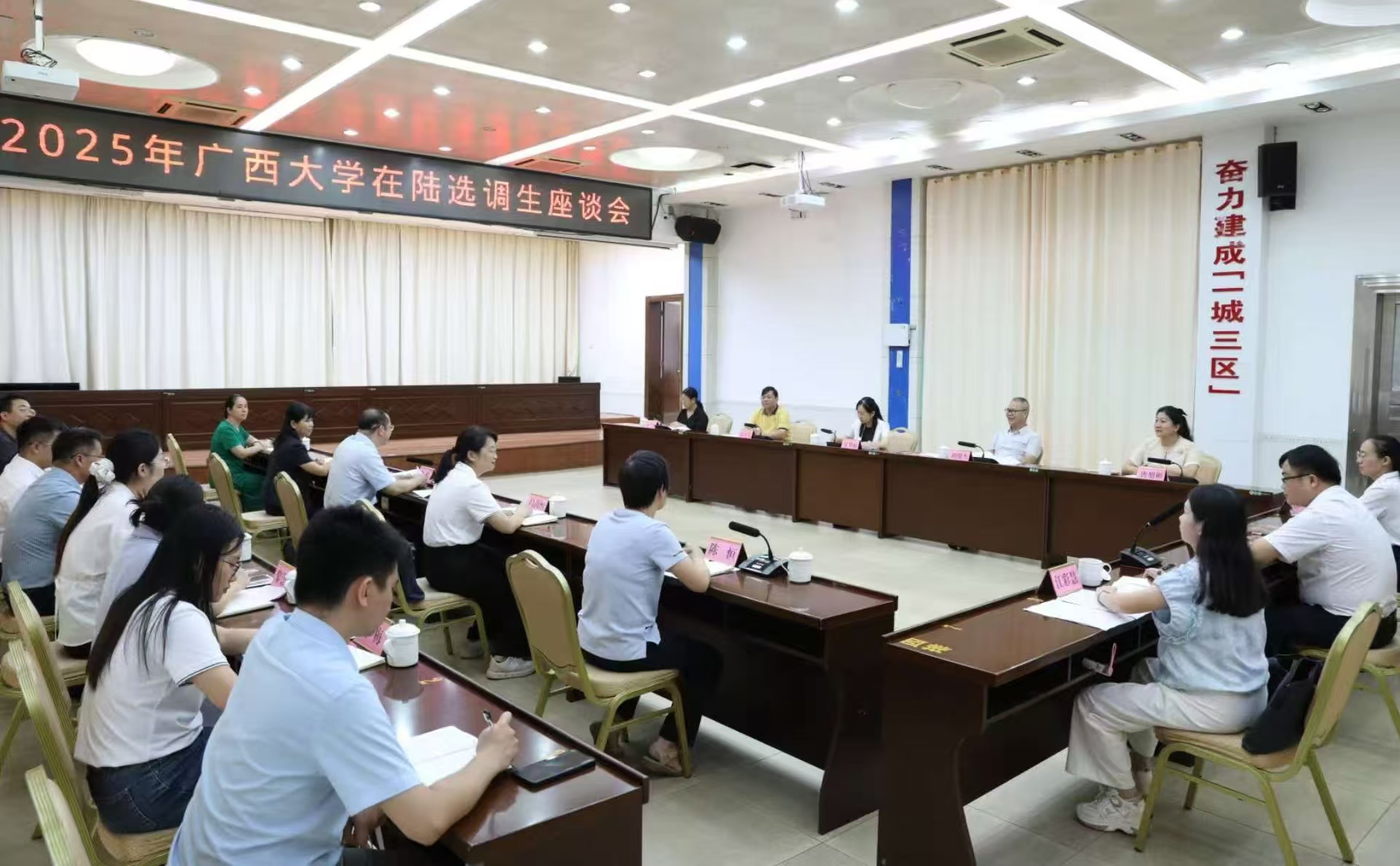 为贯彻落实校党委关于选调生“君武青苗行动”的工作部署,9月28日-29日,院党委书记吴华丽带队赴玉林市陆川县开展选调生调研工作,召开选调生代表座谈会,到沙坡镇实地走访选调生代表。陆川县委书记梁伟参加座谈会并作为选调生代表作重点发言,座谈会由陆川县委常委、组织部部长王清萍主持,太阳集团2138网址在陆川县工作的14名选调生代表参加座谈会。