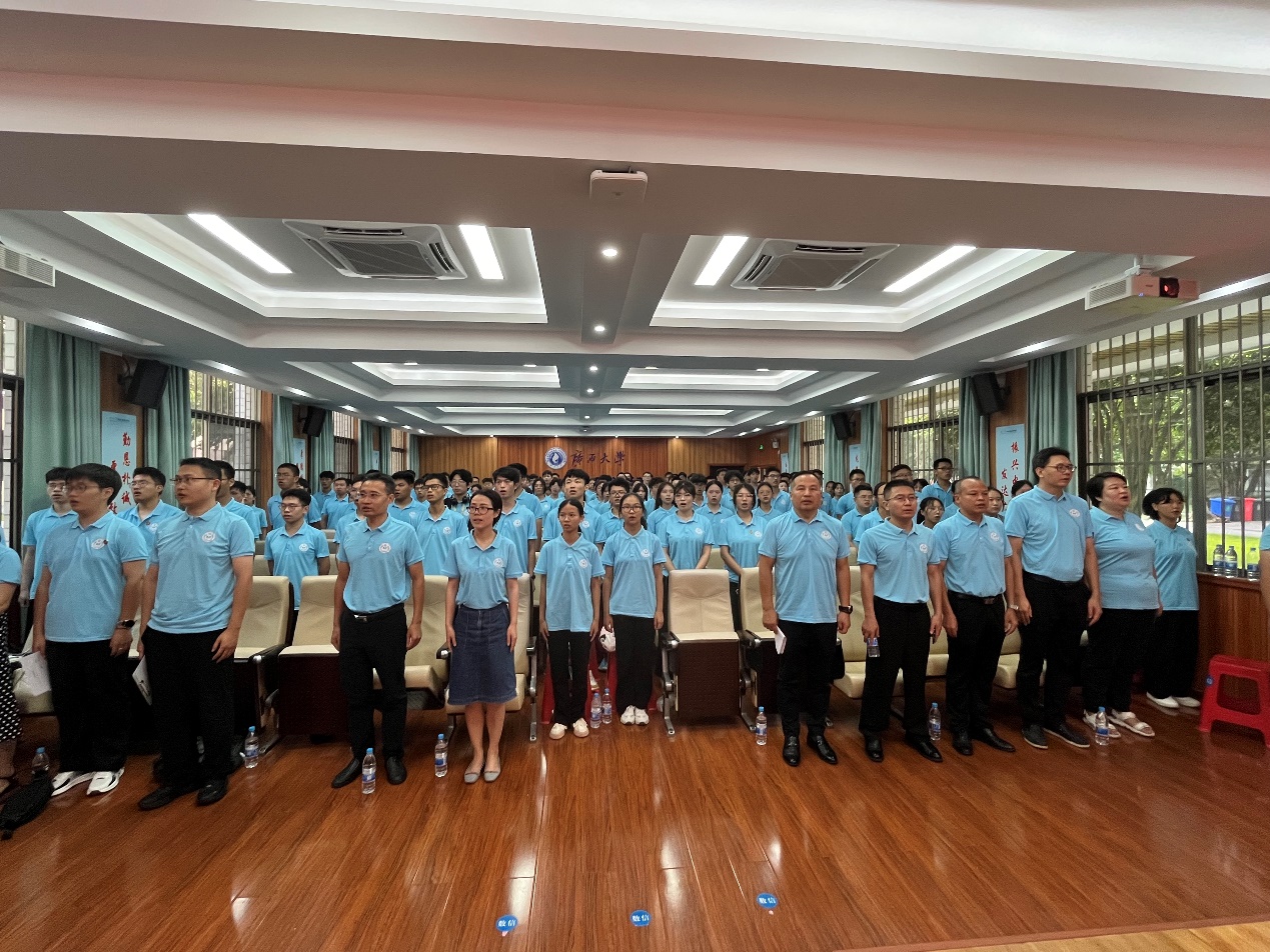 郭真华代表学院向今年入学的126名本科新同学、68名硕士研究生和16名博士研究生新同学表示热烈欢迎和祝贺。他指出,数学教育不仅仅是知识传授,更是逻辑思维和科学研究能力的培养。他强调,大学不是独木桥,比拼的不应该只有绩点的内卷,要全面发展,要注重培养大人格,研究大学问,涵养大胸怀,积蓄大能量。最后,他对新生们提出了三点要求:一是要读懂什么是大学。大学期间要不断地发现、探索自我,在打牢基础的同时留意寻找自己的兴趣和优势所在,学会思考,学会选择。二是要尊重老师,敬畏学术。要学会感恩老师的传道授业解惑,对待学术,应该时刻保持敬畏之心,恪守学术道德。三是坚持锻炼,强健体魄。良好的身体素质是做好学问的前提。拥有强健的体魄可以让同学们有足够的精力和耐力去应对长时间的学习和思考,提高学习效率,增强抗压能力。