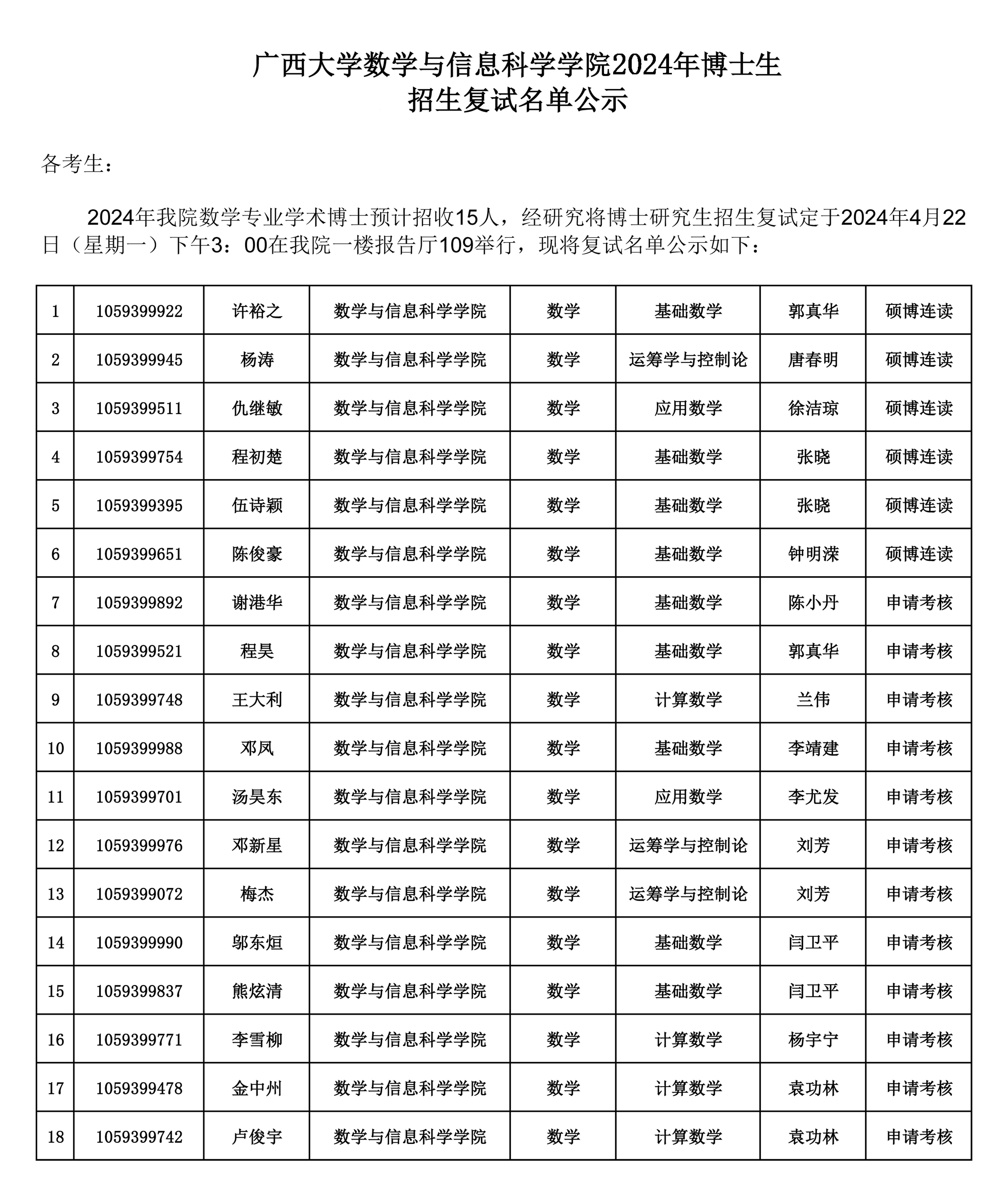 广西大学太阳集团2138网址,2138cc太阳集团官网入口2024年博士生招生复试名单公示