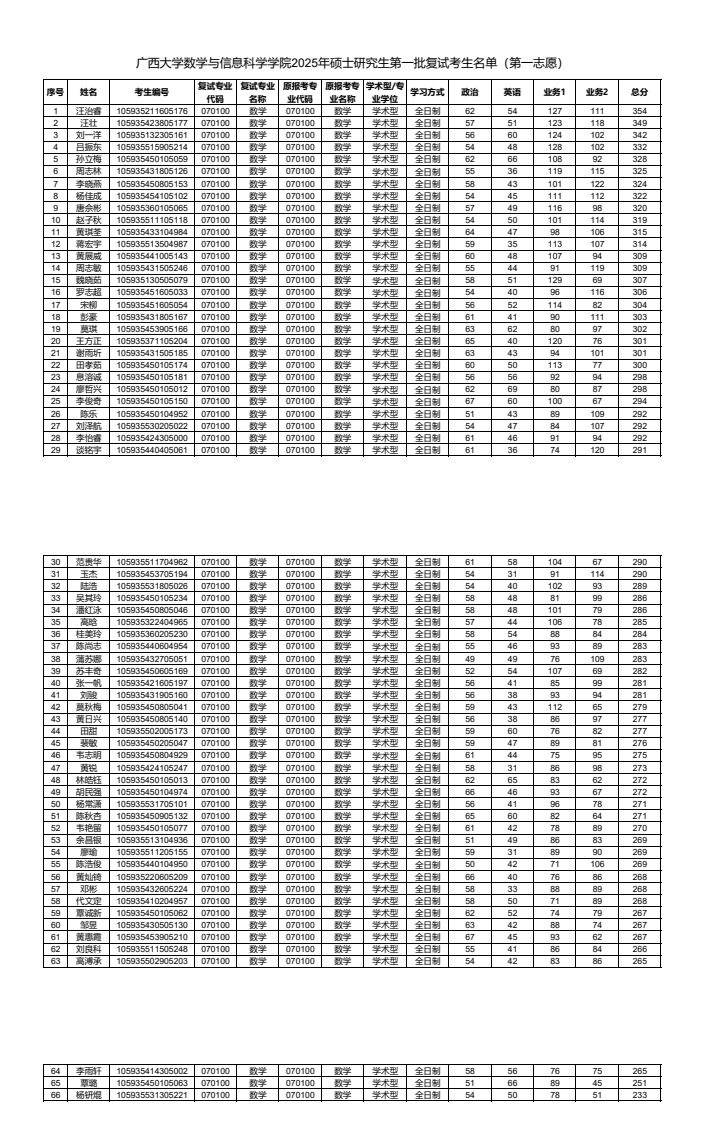 广西大学太阳集团2138网址,2138cc太阳集团官网入口2025年第一批硕士研究生复试成绩结果公示