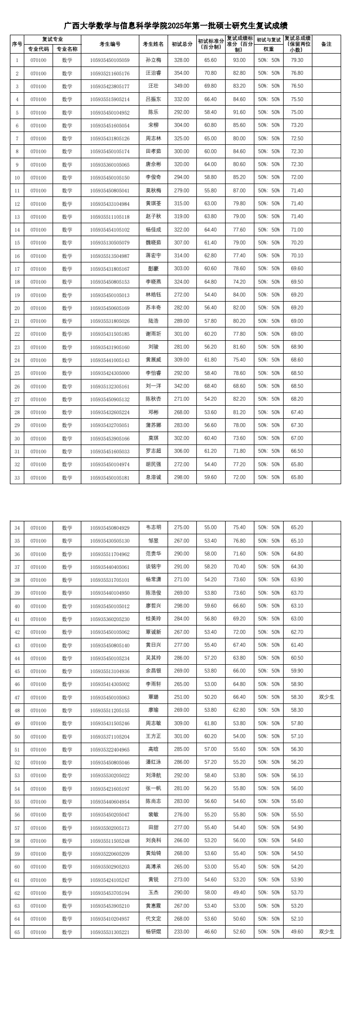 广西大学太阳集团2138网址,2138cc太阳集团官网入口2025年第一批硕士研究生复试成绩结果公示