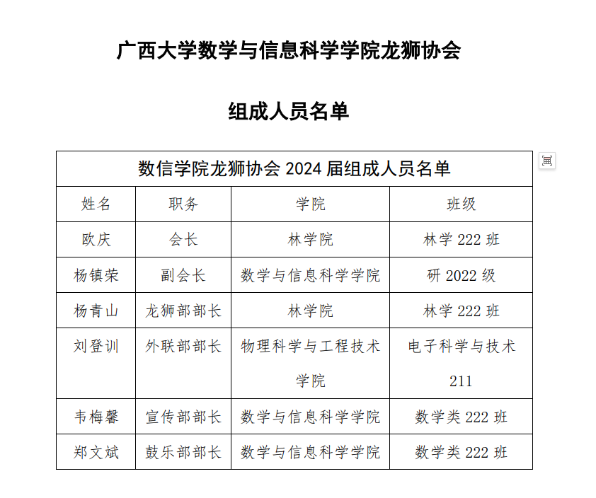 广西大学太阳集团2138网址,2138cc太阳集团官网入口龙狮协会 组成人员名单