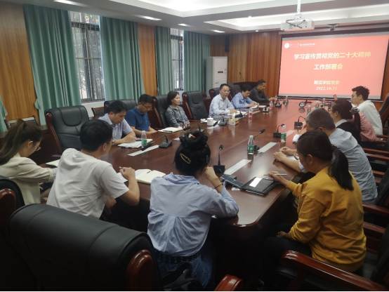 10月31日下午,学院党委理论学习中心组在学院214会议室召开学习宣传贯彻党的二十大精神工作部署推进会,交流前一阶段学习心得体会,全面部署推动学习宣传贯彻工作走深走实。学院党委理论学习中心组成员、各支部书记参加会议。