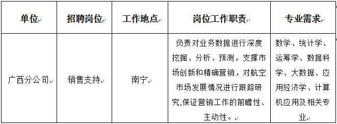 具体岗位招聘情况及要求详见南航招聘官网(job.csair.com)